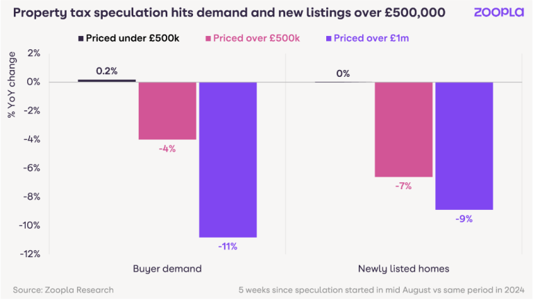 Rather than signalling immediate change, this discussion is prompting buyers to pause and consider their next move. Recent data shows enquiries for homes over £500,000 have dipped 4%, and 11% for properties above £1 million, with listings in the £1 million+ range down 9%.