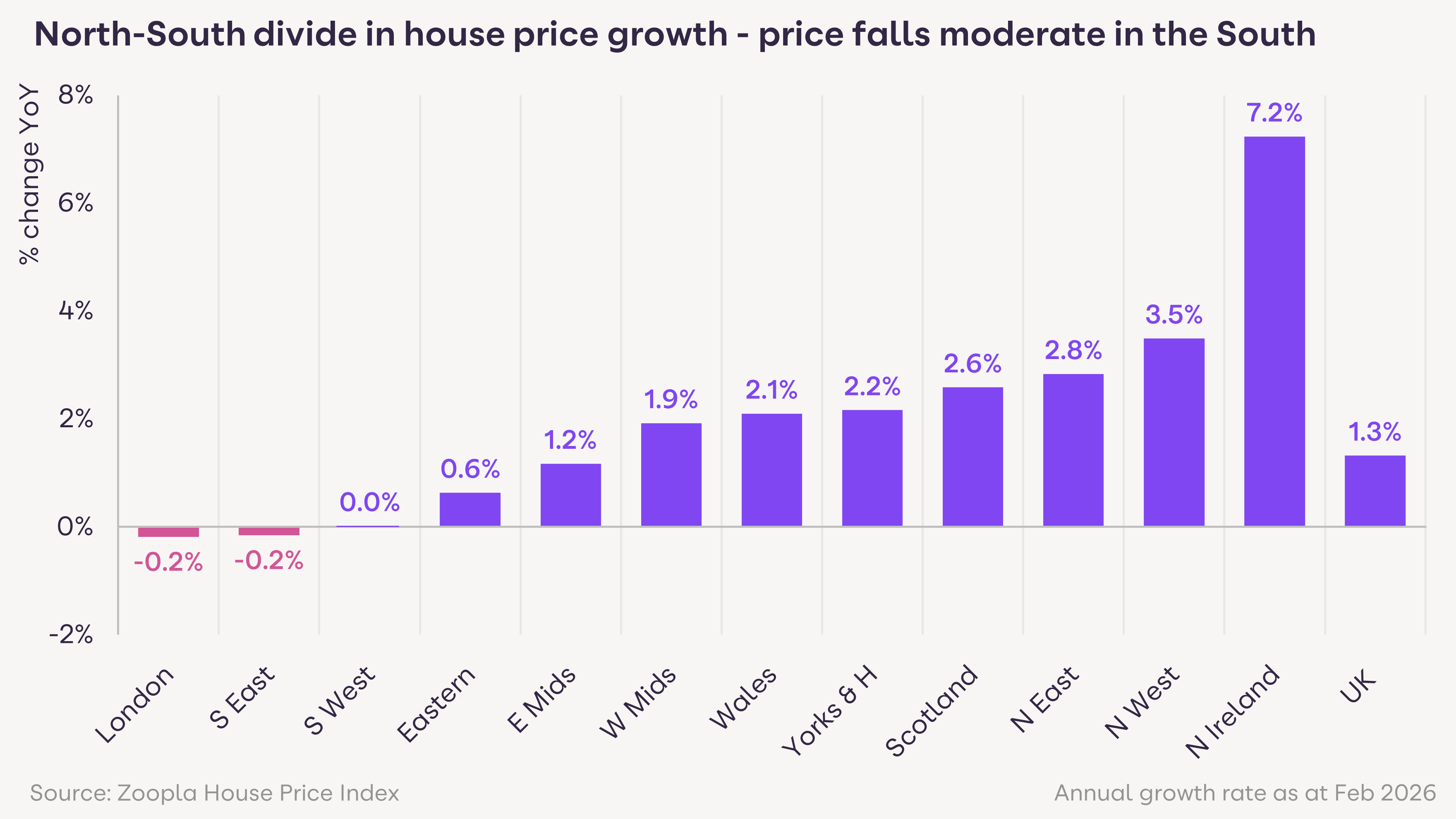 The headline house price growth rate is stable but performance varies by property type. Semi-detached and terraced homes are currently seeing the highest price growth, while flats are experiencing slight price corrections.