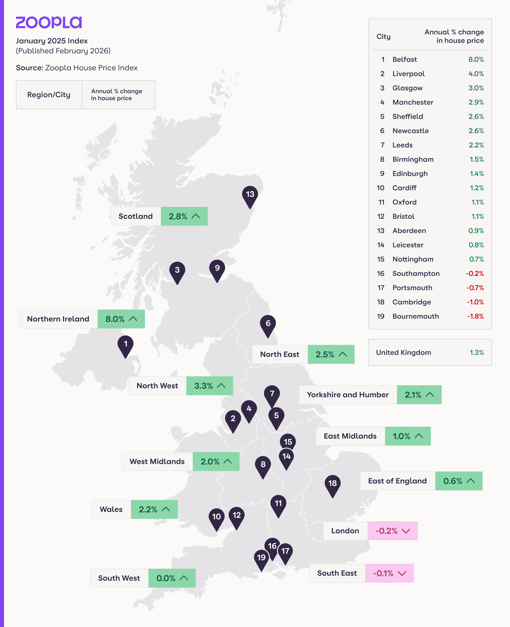 Annual house price growth is higher than a year ago in 4 areas: the North West, Scotland, the North East and Northern Ireland. These markets are more affordable and have fewer homes for sale than a year ago, limiting buyer choice and giving more scope for above-average house price increases.