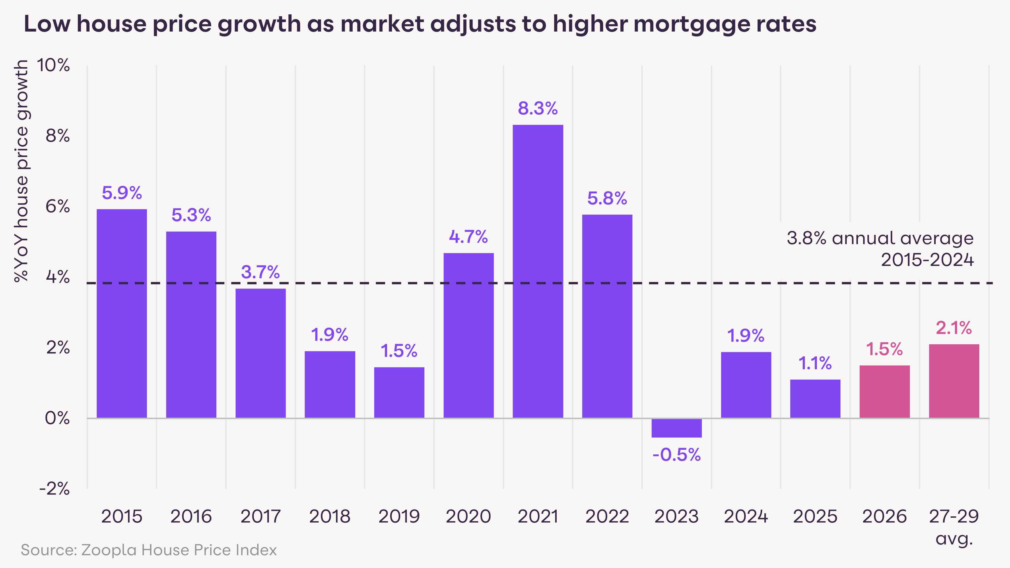 We expect sales volumes to remain elevated, close to the 1.2m long run average, with plenty of homes for sale which will boost buyer choice and keep price rises in check. Average UK house prices are projected to be 1.5% higher over 2026 with an annual average increase of 2.1% a year between 2027 and 2029 as housing affordability continues to steadily reset and supports the number of sales.